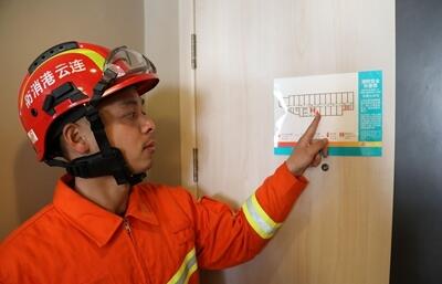 當天上午,消防隊員一進入到賓館的房間后,首先提醒大家的是,入住賓館后要先了解逃生路線,他指著房門后的逃生疏散示意圖介紹道,“一般來說,商場、KTV、賓館、飯店等公共場所都會在大門口、樓道口或者房門后等醒目位置,張貼出這個區(qū)域的逃生疏散圖,圖上會標注出疏散路線以及安全出口、逃生通道的具體位置。當大家來到這樣的場所時,一定要有意識地查看一下逃生疏散圖,注意觀察安全出口和疏散通道的位置,記住疏散方向,只有這樣才能在發(fā)生突發(fā)情況時,做到快速安全地撤離。”