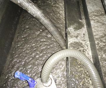 5. 接好抽水汞管道和清水排放管道,并把兩條管道輕輕放進要處理的水簾池中。