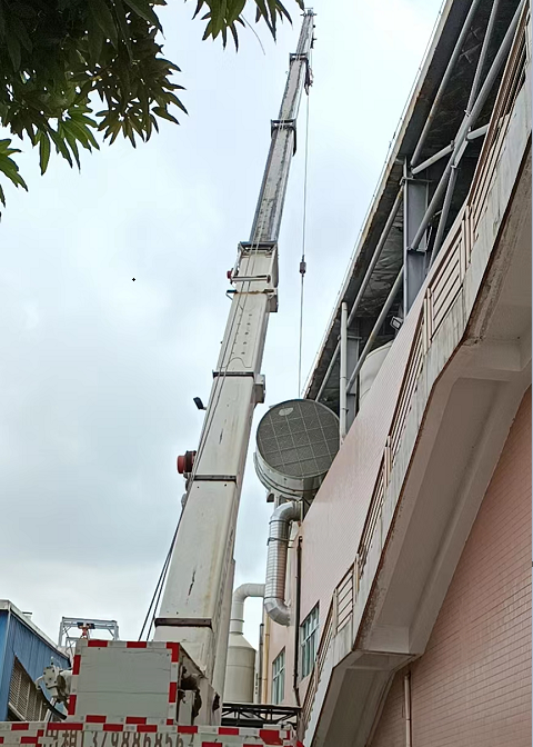 如下是電子廠廢氣處理改造項目現(xiàn)場,使用的廢氣處理設(shè)備:噴淋洗滌塔15000風量2個和風機一組。