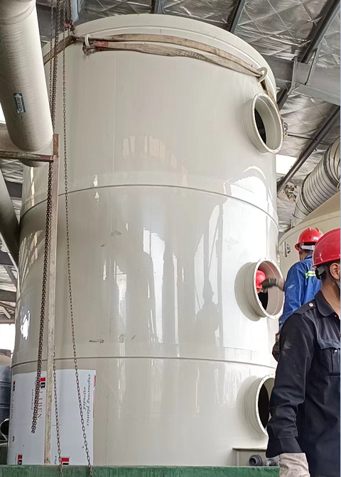 5月5日,廣東久藍環(huán)保在東莞進行電子廠廢氣處理,該項目屬于電子廠廢氣處理的改造項目,其改造目的是更換噴淋塔2個,通過噴淋洗滌塔對電子廢氣進行洗滌,然后通過填料凈化廢氣達到排放目的。